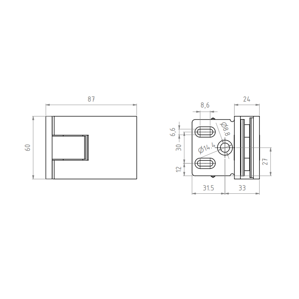 Shower door hinge NordX, wall-glass, brushed matte brass PVD