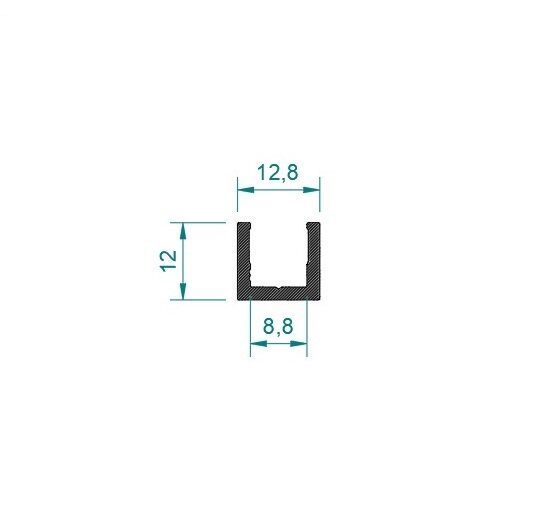 U-profiili 8-8.76 mm lasille, matala, harjattu mattamessinki, L=3100