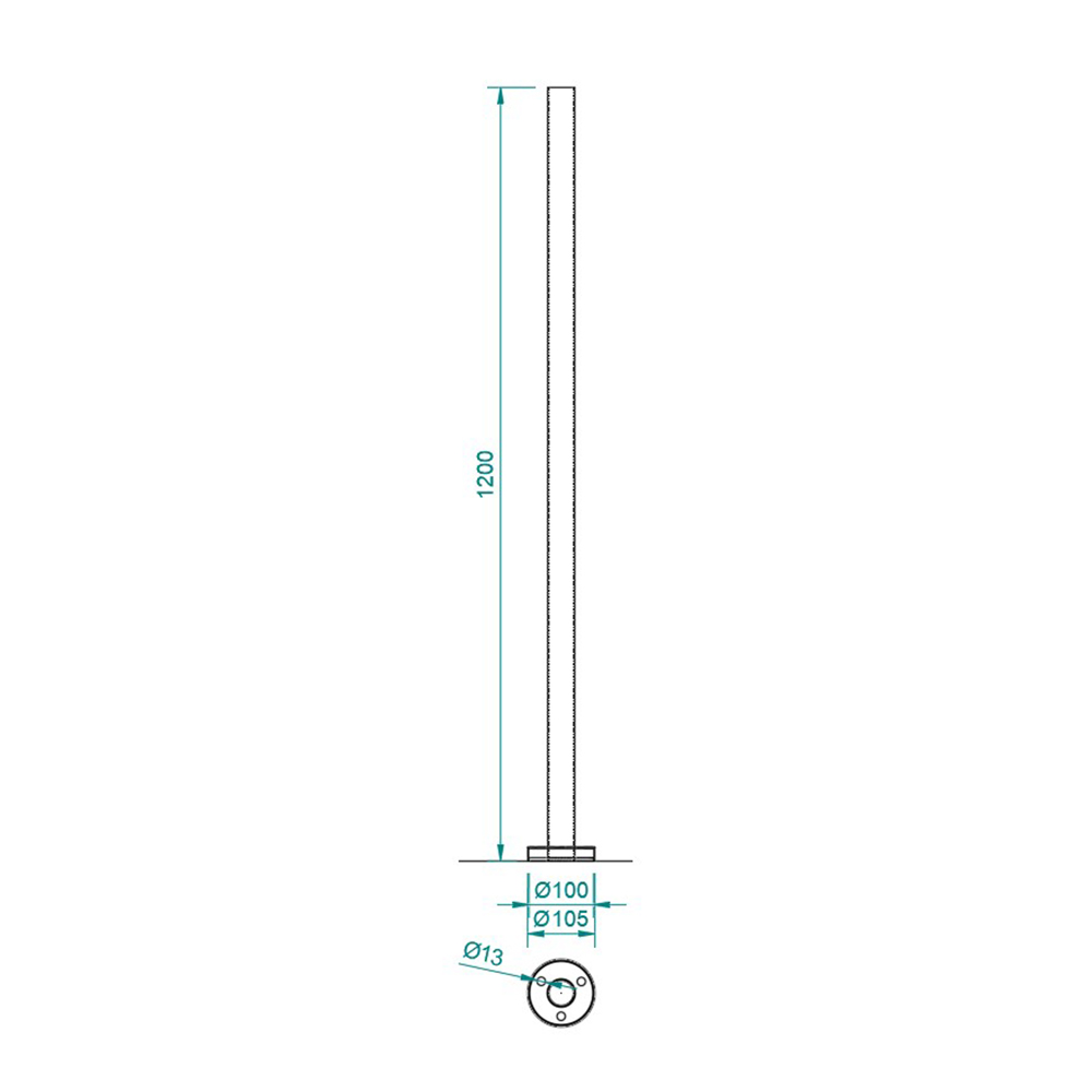 Base fixed baluster post Ø42.4×2, AISI304, no clamps