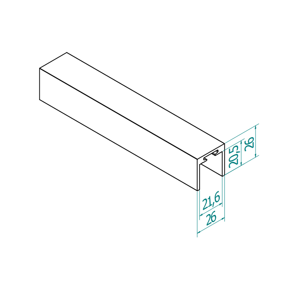 U-profiil käsipuu klaasile 10+10 mm, haljas alumiinium