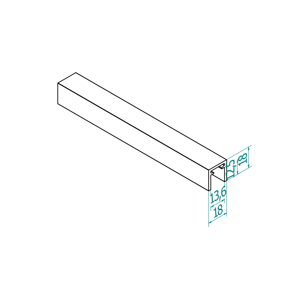 U-profiil käsipuu klaasile 6+6 mm, haljas alumiinium